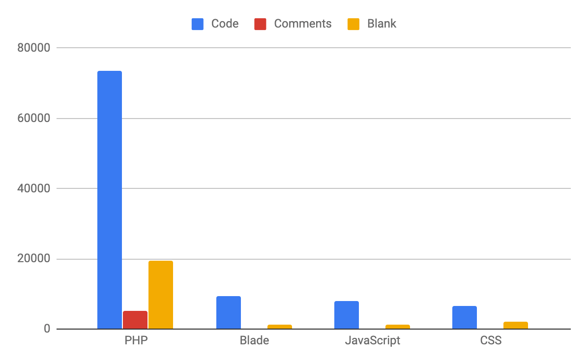 So, how much code have we written the past year? Here's a summary, gathered with the phploc package: